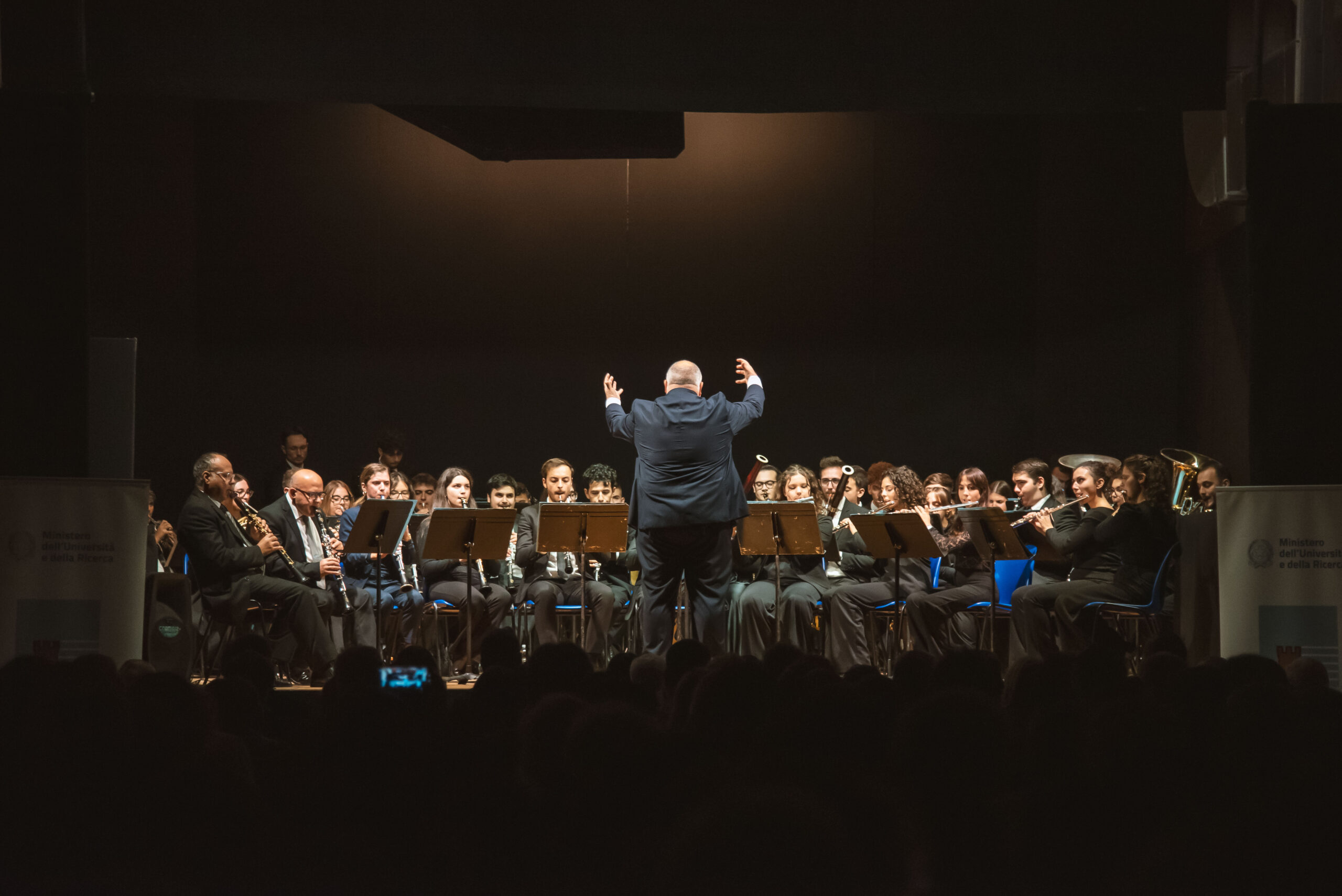 Sul palco è stato infatti protagonista l’Orchestra di Fiati del Conservatorio, diretta dal Maestro Paolo Morana, che ha proposto un repertorio che ha spaziato dai grandi classici del genere alle grandi colonne sonore di compositori italiani, quali Ennio Morricone e Nino Rota, e internazionali come Hans Zimmer e Vangelis. Composta da un organico strumentale di circa 53 elementi tra flauti, oboi, fagotti, clarinetti, sassofoni, corni, trombe, tromboni, euphonium, basso tuba e percussioni, l’orchestra è costituita sia da allievi che ex allievi e da alcuni docenti del Conservatorio di Musica.